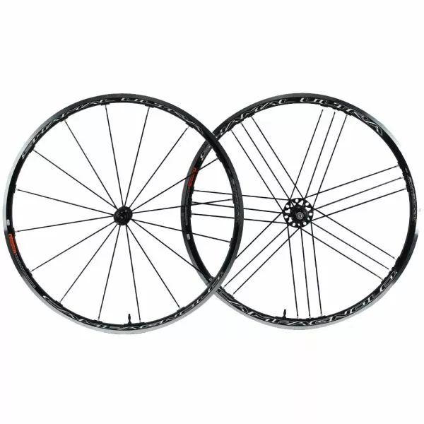 Campagnolo hjulsæt “Shamal Ultra C17” Racing, medium højde fælgprofil (26mm for / 30mm bag) asymmetriske borede fælghuller, 16 sorte alu aero eger foran , 21 sorte alu aero eger bag, anti-rotationssystem, alu / carbon nav krop, alu brystvorter, USB hukommelse, 100 / 130mm installationsbredde