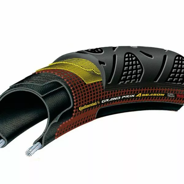 Continental Grand Prix 4-Season Für jede Saison gerüstet Hoher Pannenschutz und Langlebigkeit zeichnen den Grand Prix 4-Season aus. Der Reifen setzt sich durch eine hohe Laufleistung und ausgezeichnete Bodenhaftung perfekt in Szene. Im Wettkampf und auf Touren profitierendie Fahrer von der extremen Belastbarkeit durch das DuraSkin®-Gewebe. Ein verlässlicher Begleiter für Vielfahrer.